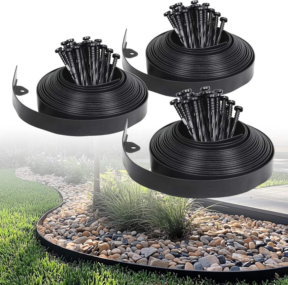 Kit Bordura Giardino Fai-da-te Facile da Installare Senza Scavo, Bordura Paesaggistica in Plastica con Picchetti per Separazione Prato e Vialetti