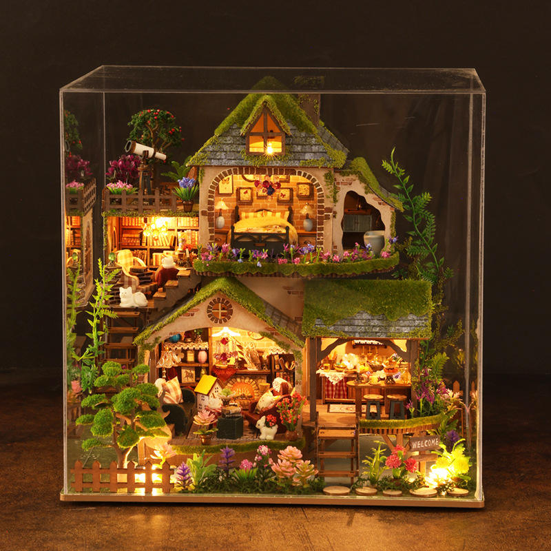 Set di Mobili in Legno Fai-da-Te per Casa delle Bambole, Modello Educativo Villa nella Foresta, Regalo per Ragazzi 14+ Anni