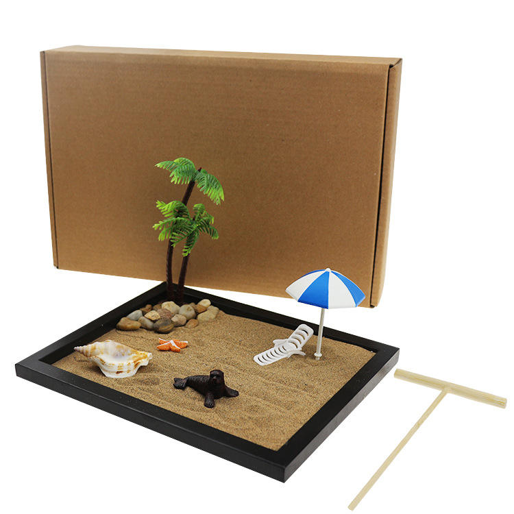 Mini giardino di sabbia Zen albero di cocco conchiglia di leone marino