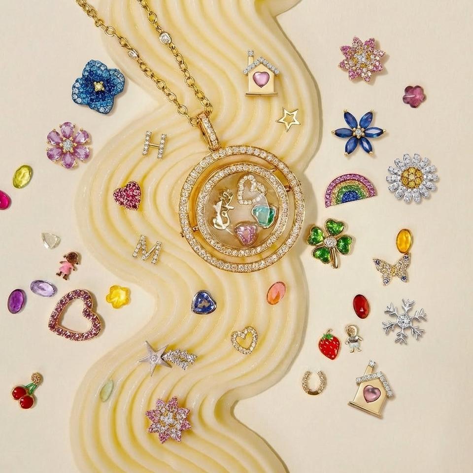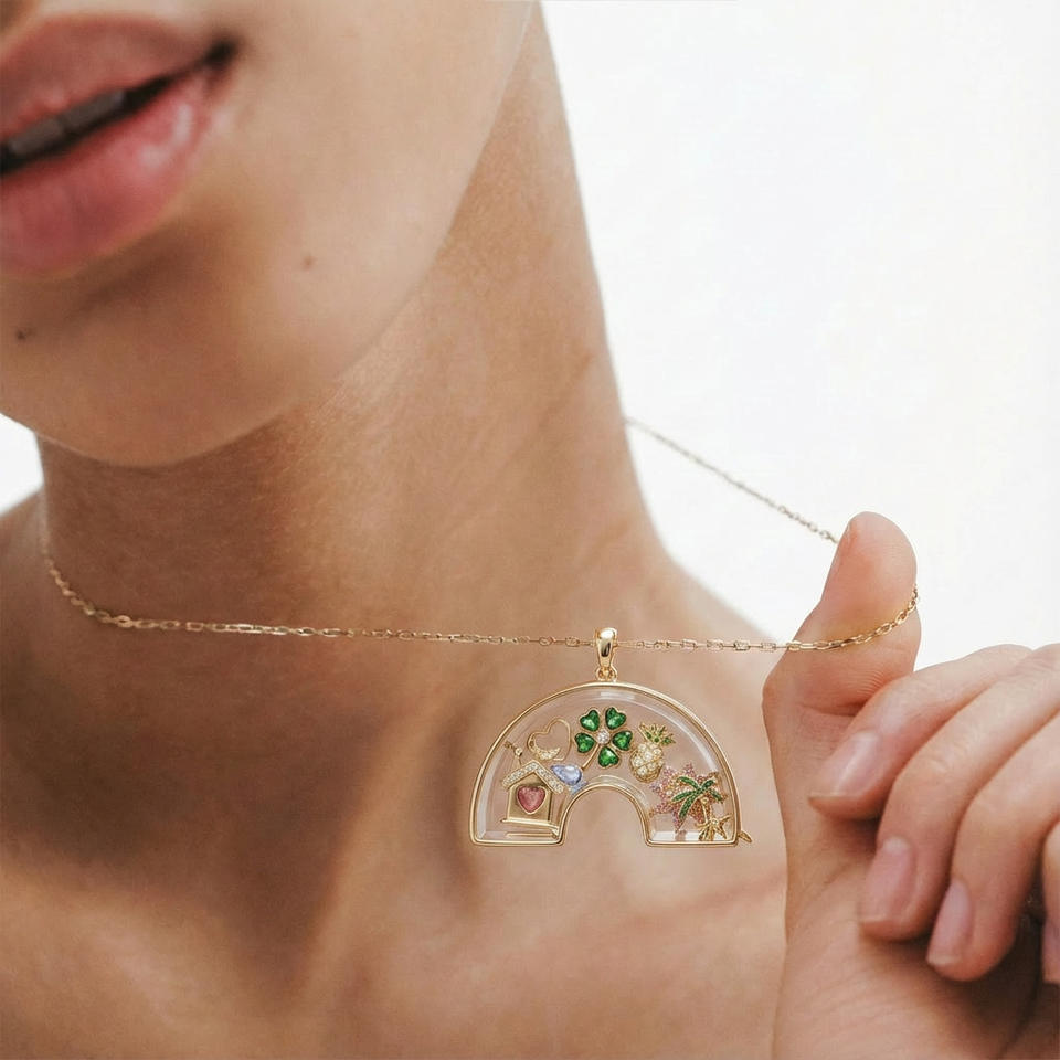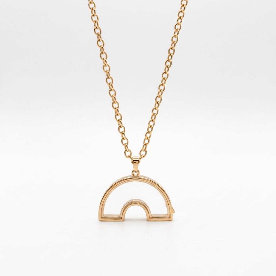 Collana con Ciondolo a Scatola Trasparente Girevole in Vetro, Design Arcobaleno Cavo Fai-da-te, Placcato Oro 18K, Ciondoli Personalizzabili, Gioielli a Medaglione Vuoto