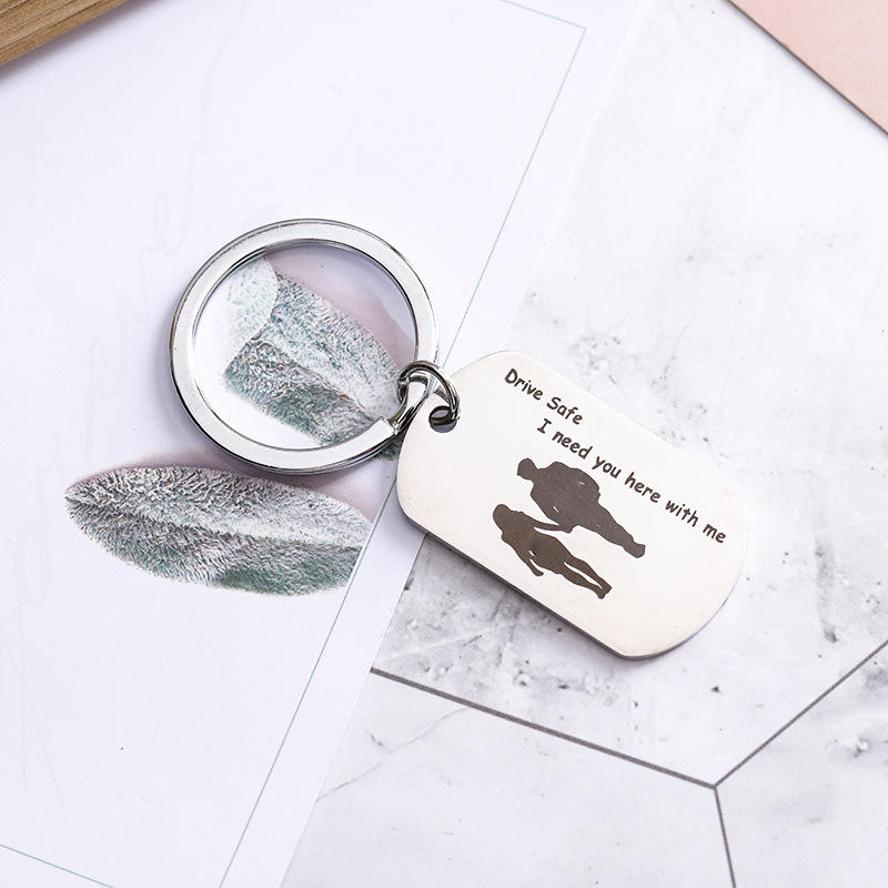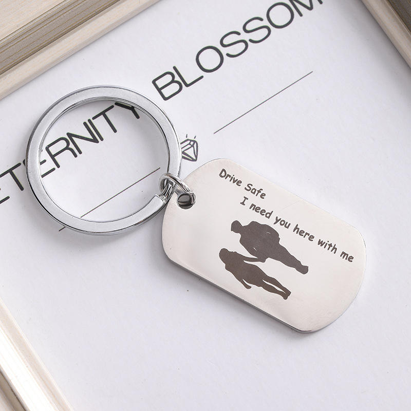 Fai da te portachiavi Drive sicuro ho bisogno di te qui con Me ciondolo gioielli uomo e donna in acciaio titanio