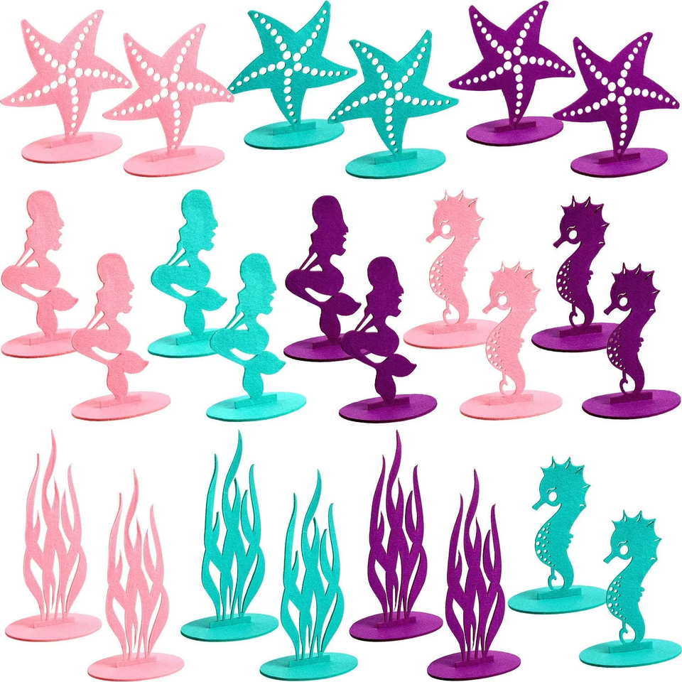 Ornamento da Tavolo Fai-da-Te a Tema Sirena di Lusso per Baby Shower, Festa di Compleanno per Bambina, Scena Marina in Feltro Ecologica e Riutilizzabile per Torta