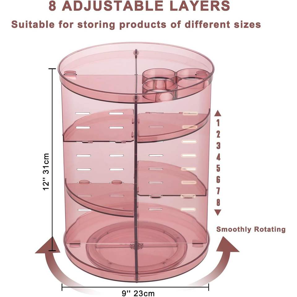 Organizzatore Trucchi Girevole Fai-da-te a 8 Livelli Regolabili, Porta Cosmetici Girevole a 360°, Carosello Porta Trucchi a 8 Strati Regolabili