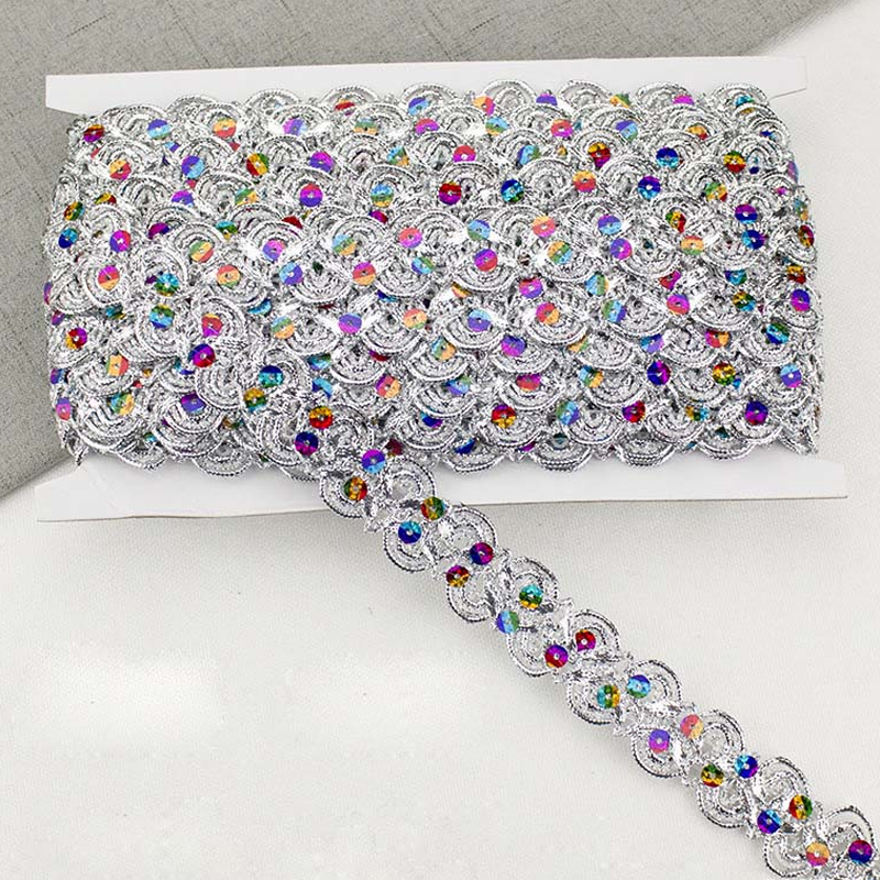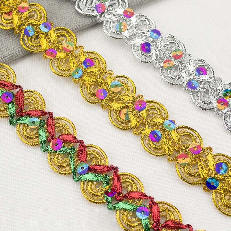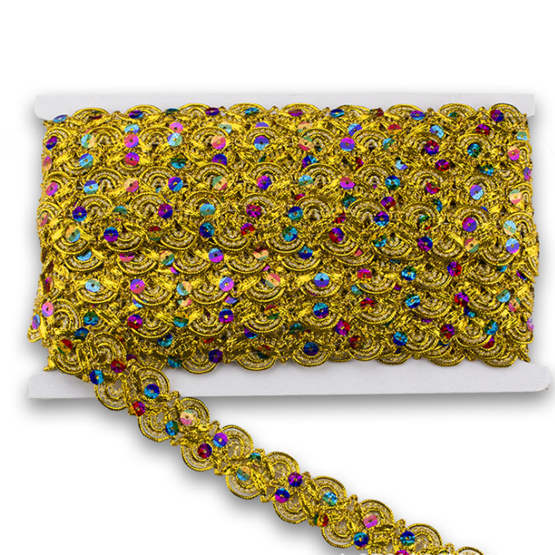 Passamaneria Dorata Fai-da-Te 25mm 2.5cm, Bordatura in Pizzo Intrecciato con Paillettes per Sciarpe e Costumi, Rifinitura Metallica
