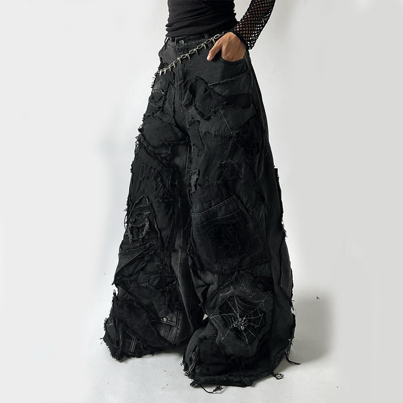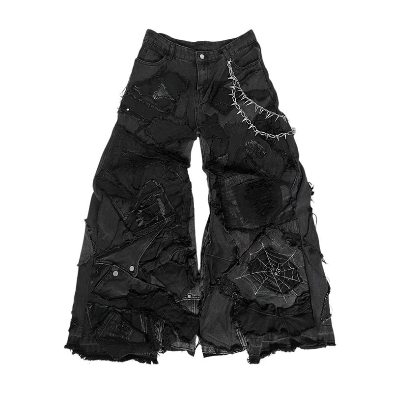 DIZNEW 2025 Jeans da Uomo Stonewashed Dritti di Alta Gamma Personalizzati Neri con Effetto Strappato Vintage a Gamba Larga Jeans Cargo da Uomo