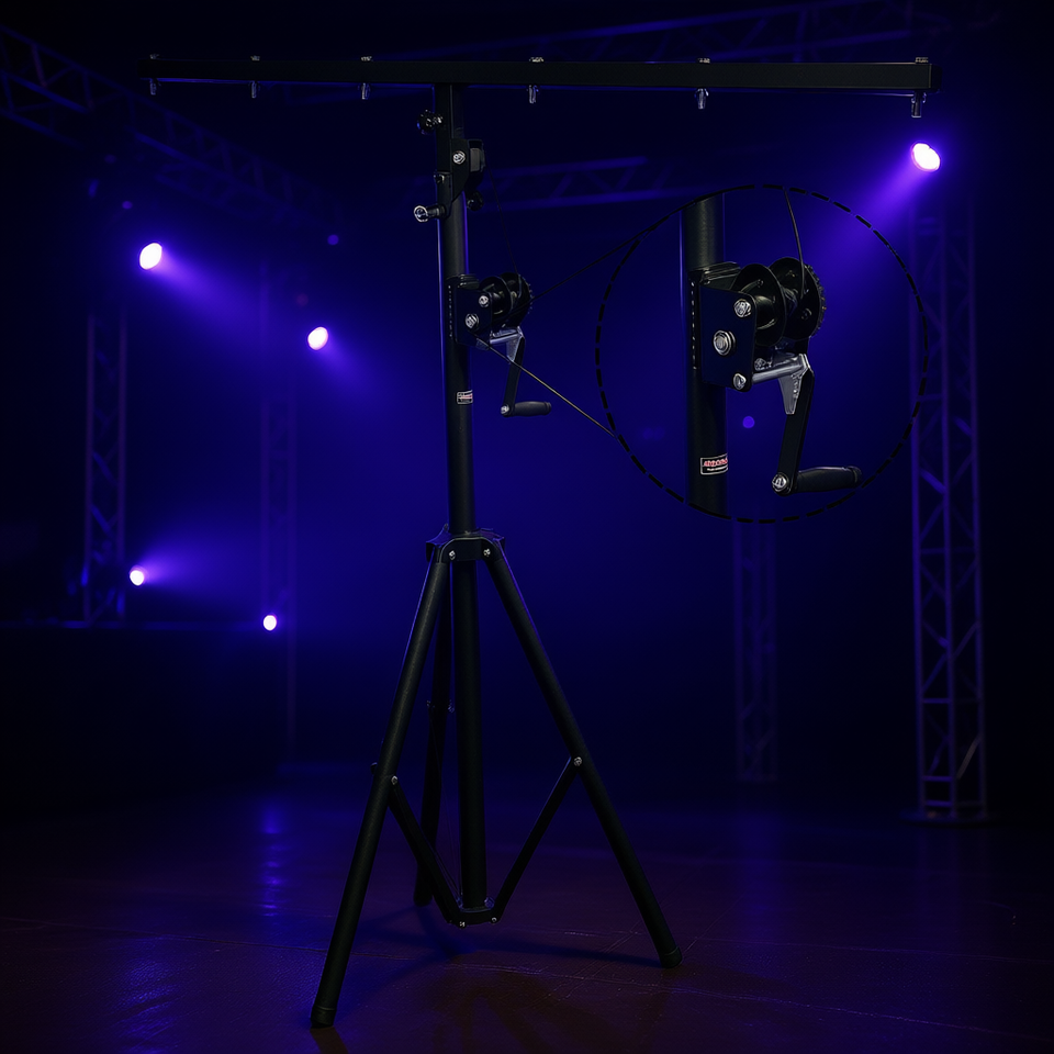 Supporto per Luci DJ LS 110 CRANK D0100X30WGJ, Robusto Sistema di Illuminazione da Palco con Manovella Manuale e Altezza Regolabile con Barra a T