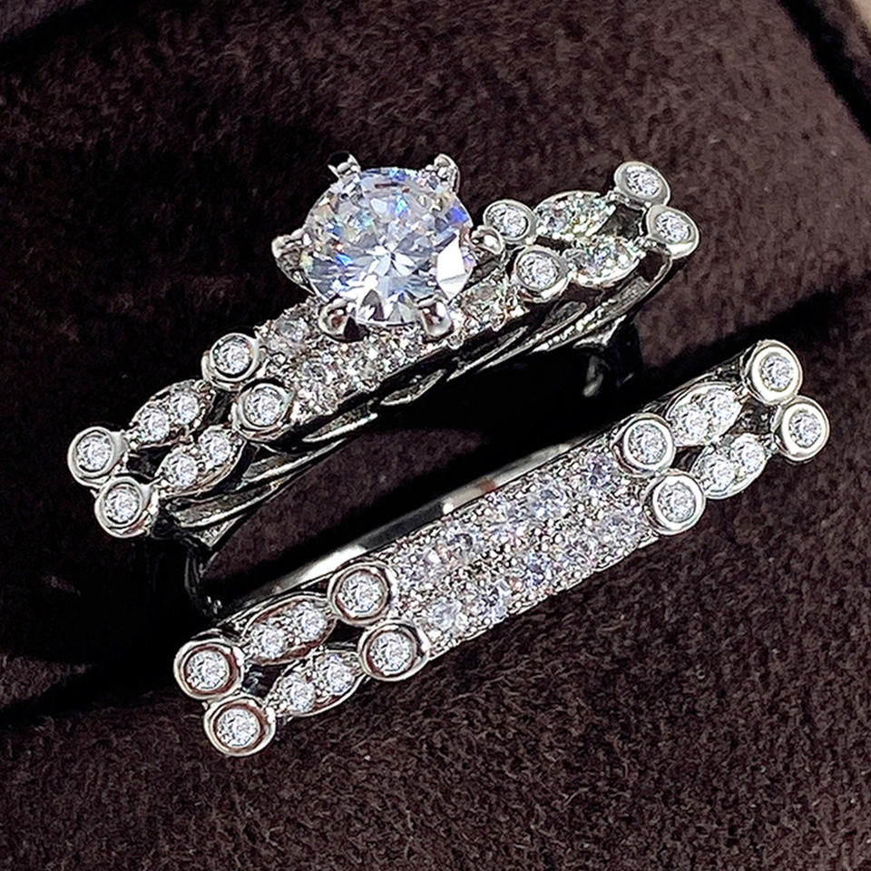 DJ023 Women's White Gold Diamond Engagement Ring Round Brilliant Cut Natural G Color Side Diamonds