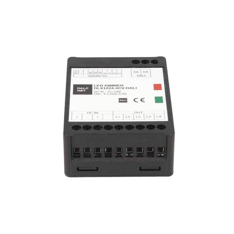Controller Dimmer LED RGB RGBW DLX1224-4CV-DALI a 4 Canali con DMX, PWM 12V, Interruttore Manuale e Telecomando, Uscita 6A, Certificato ROHS