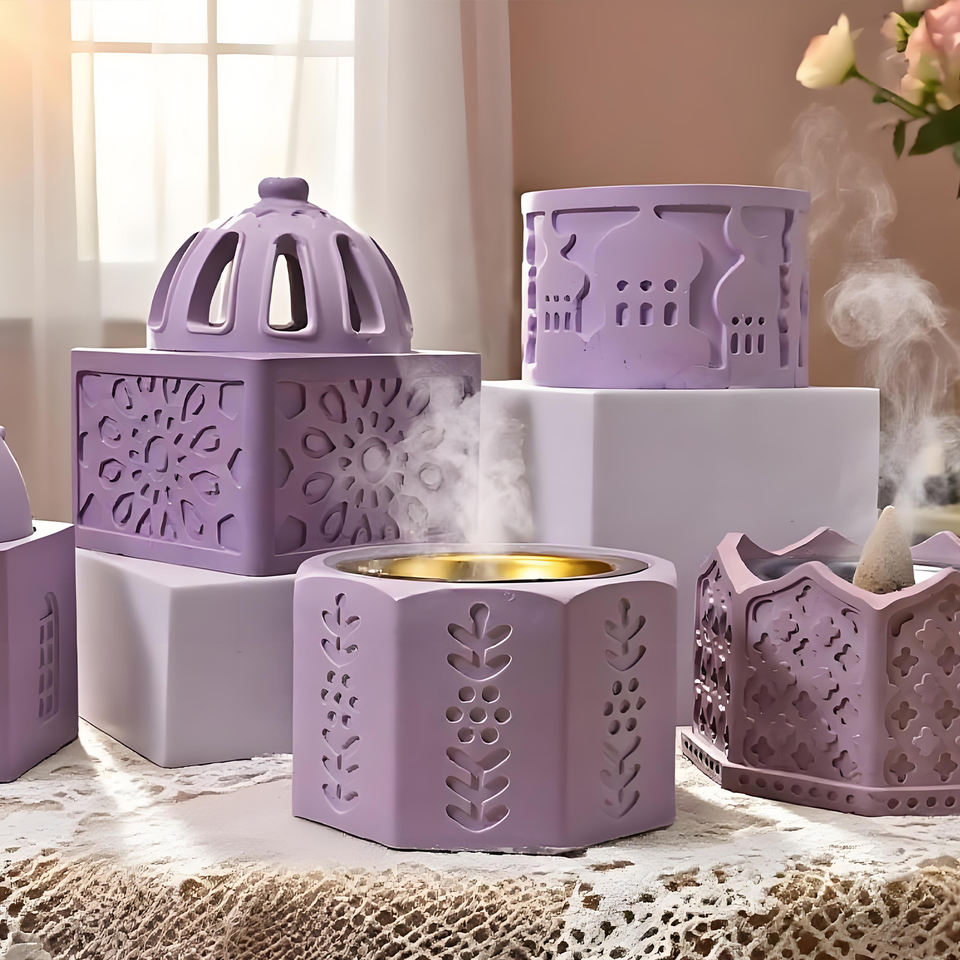 DM1220 Stampo in Silicone 3D per Bruciatore di Incenso Mediorientale Fai-da-Te Barattolo per Candele in Silicone Gesso Cemento Incensiere Stampi per Decorazioni per la Casa