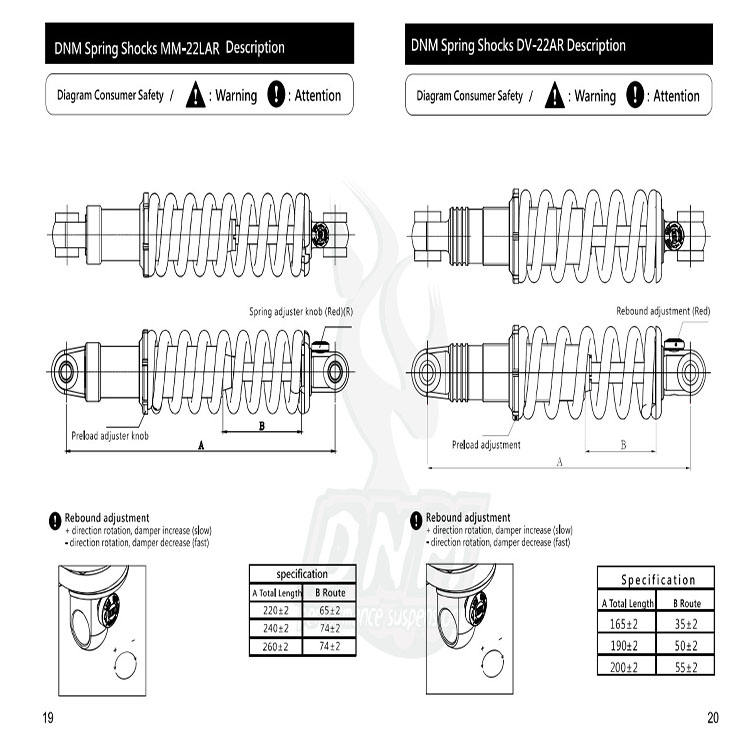 Ammortizzatore Posteriore per Bicicletta DNM DV-22AR 190/200mm 750lbs con Molla ad Olio per Bici Elettrica