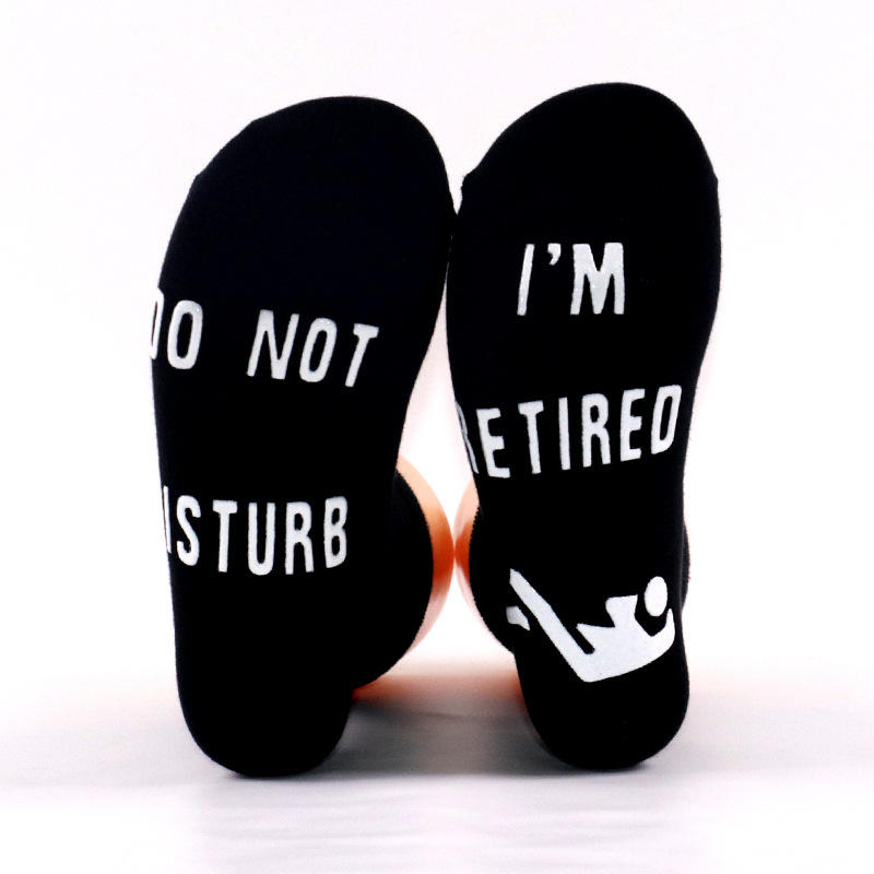 Calzini in Cotone Lavorati a Maglia Antiscivolo con Scritta 'NON DISTURBARE SONO RITIRATO' Traspiranti e Deodoranti
