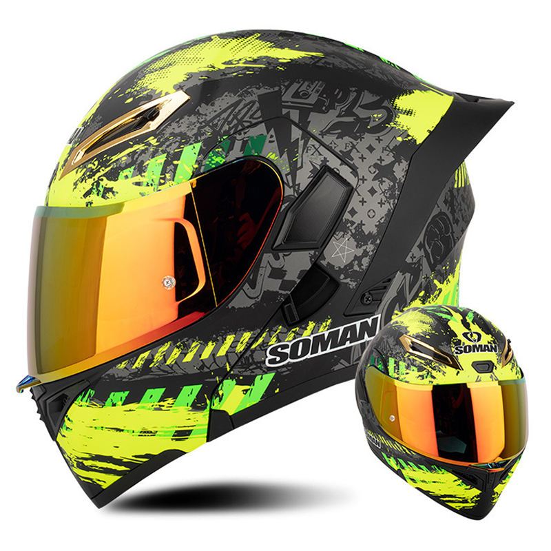 Casco da Moto Integrale per Uomo Approvato DOT con Doppia Visiera Ribaltabile, Casco da Motocross Universale per Tutte le Stagioni