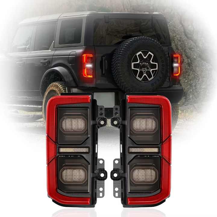 Luci Posteriori a LED Rosse Fumé DOT per Ford Bronco 2021-2025 Accessori Fanali Posteriori con Funzioni di Freno/Svolta/Posizione/Retromarcia