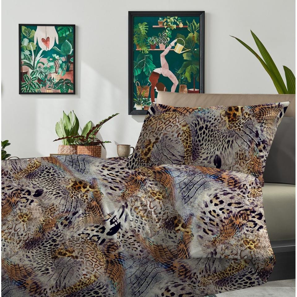 DOUBLE BED SET IN SATIN AND ASSORTED COTTON CANVAS
