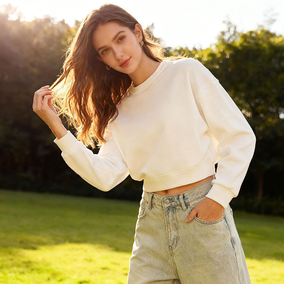 Felpa Corta da Donna DOVEARK con Logo Personalizzato, 330G S-XL, 85% Cotone 15% Poliestere, Collo Tondo, Tessuto Spugna Pesante