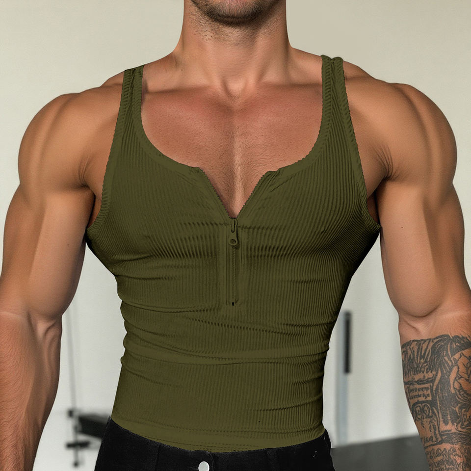 DOVEARK Custom Logo Cut Sleeve Tunic with Chest Zipper Summer Fitness Sport Crop Sleeveless Ribbed Solid Shirt Men Tank Top Vest