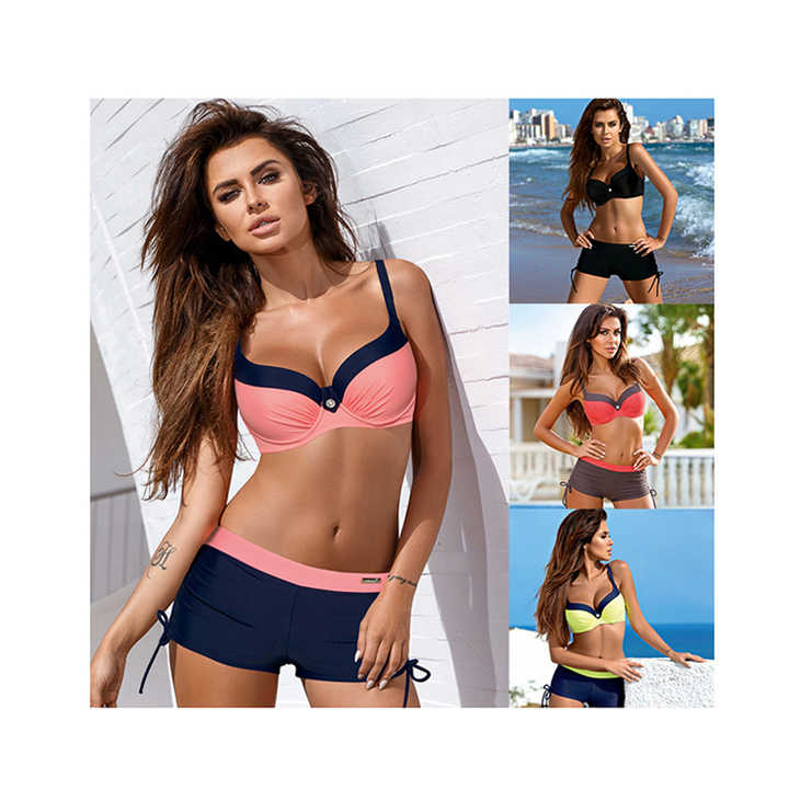 Costume da bagno da spiaggia con costume da bagno da donna per ragazze adolescenti con colore a contrasto riciclato