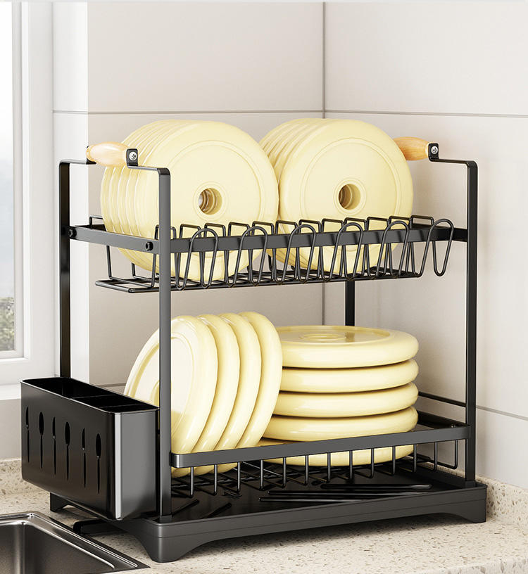 DS2288 Dish Drainer with Glass & Utensil Holder 2-Tier Dish Racks for Kitchen Counter 2 Tier Dish Drying Rack