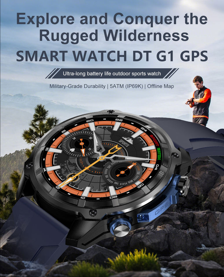 DTG1 orologio GPS di livello militare 5ATM resistente all'acqua cardiofrequenzimetro IOS Offline mappe topografiche per la navigazione risposta al pagamento delle chiamate