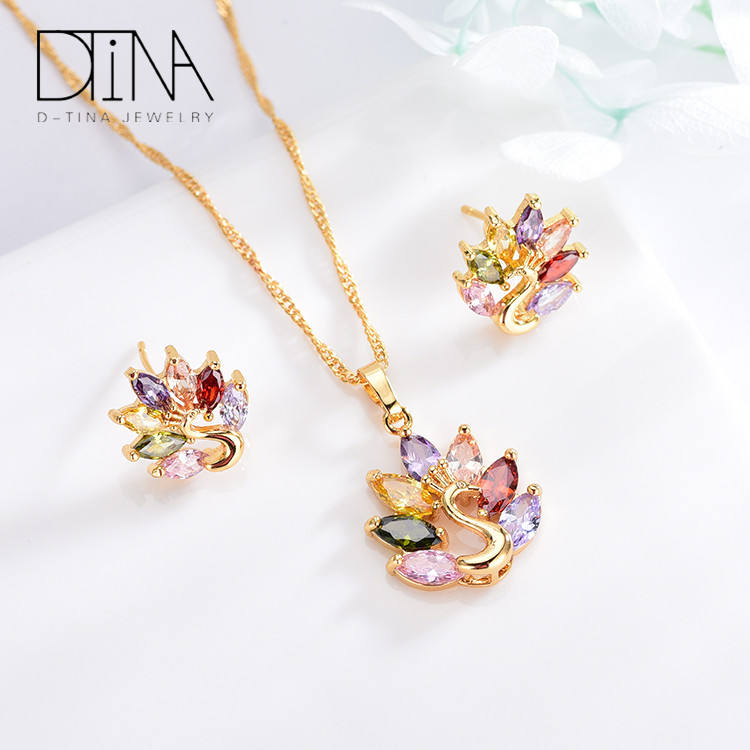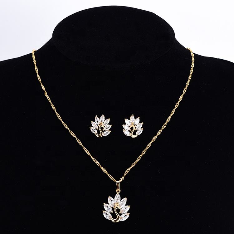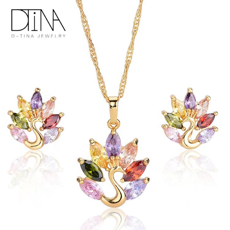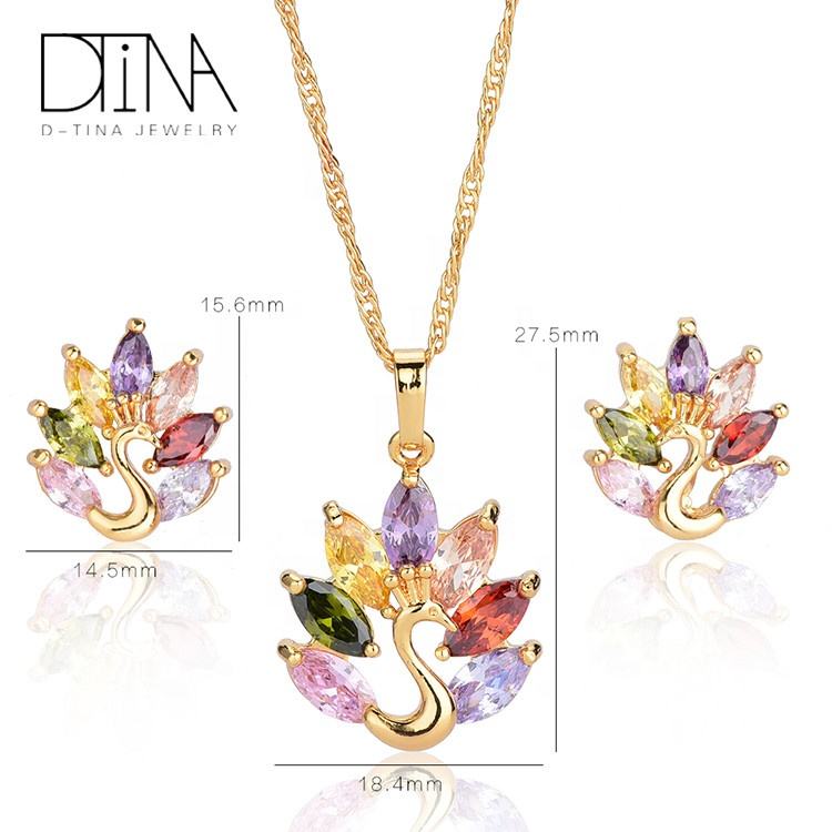 Set di Gioielli DTINA a Tema Pavone, Collana e Orecchini a Perno in Rame Economici per Sposa e Feste di Matrimonio