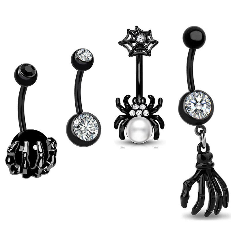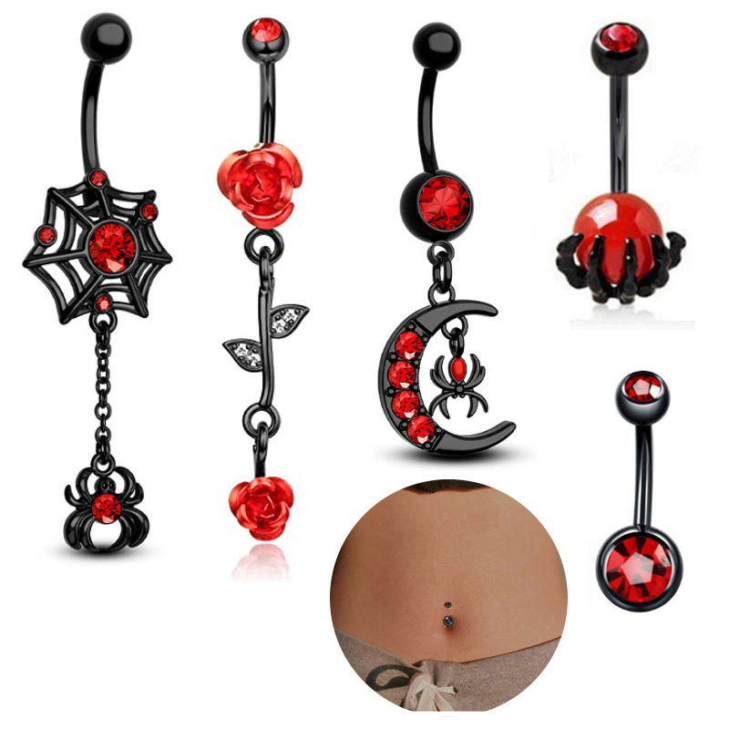 DUYIZHAO stile Punk rosso scuro CZ Piercing gioielli anello ombelico luna rosa ragno tutto hallows 'giorno ombelico per festa regalo