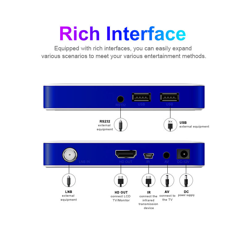 Interface:2*USB Port, 1 RCA/AV Output, 1*HD OUT, IR Cable with 4x7 Display