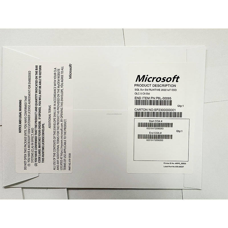 DVD SQL Server 2022/2019 Standard Std Attivazione Online a Vita SQL Server 2019/2022 Enterprise Pacchetto Completo