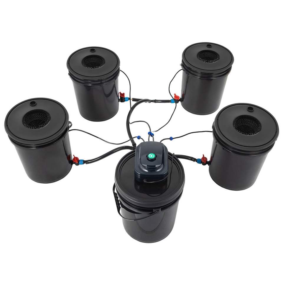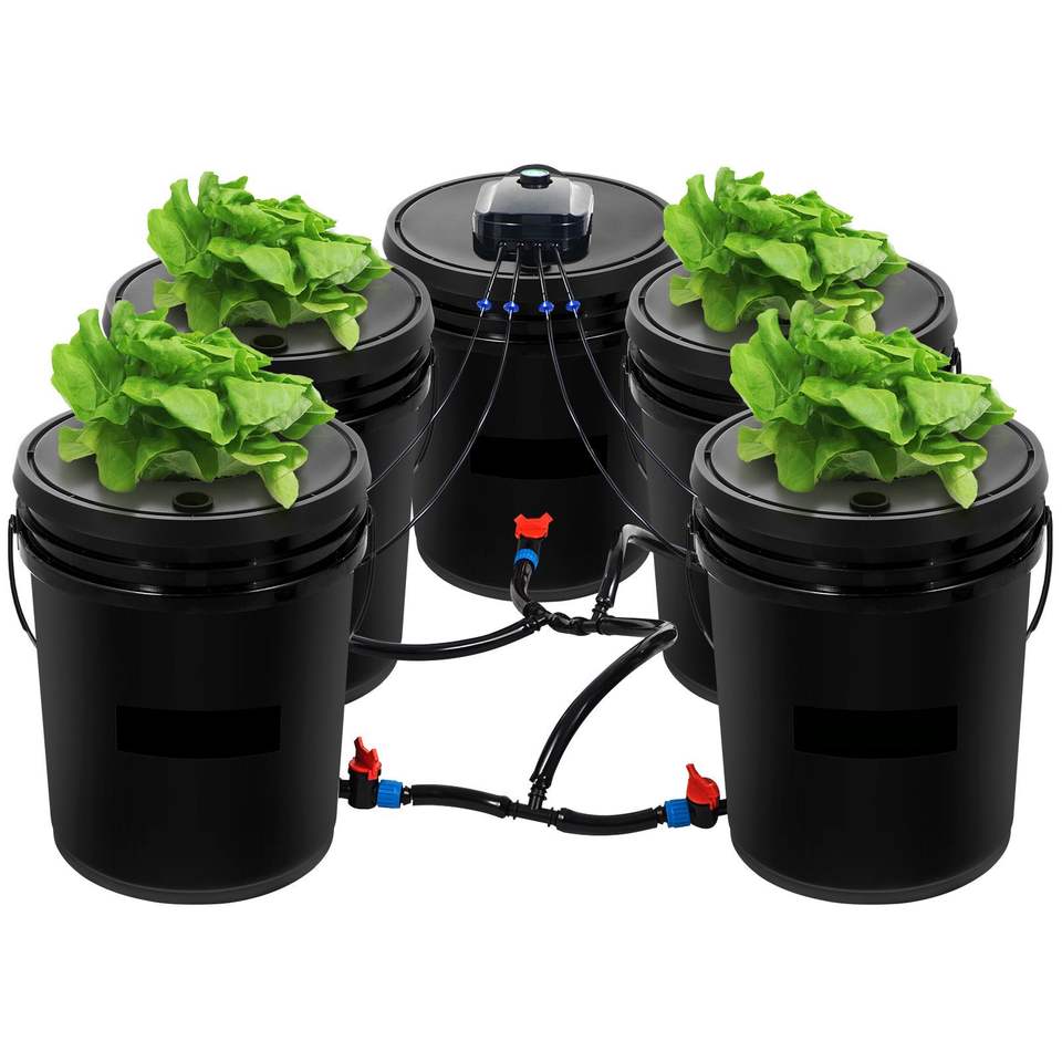 Sistema Idroponico DWC da 5 Galloni con 5 Secchi, Kit di Coltivazione in Acqua Profonda, Pompa, Pietra Porosa, Irrigazione e Attrezzatura Idroponica
