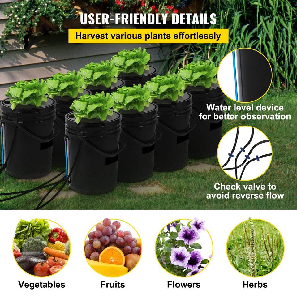 DWC 5-Gallon Hydroponic System with 8 Deep Water Culture Buckets Grow Kit Pump Air Stone Water Irrigation Hydroponics Equipment