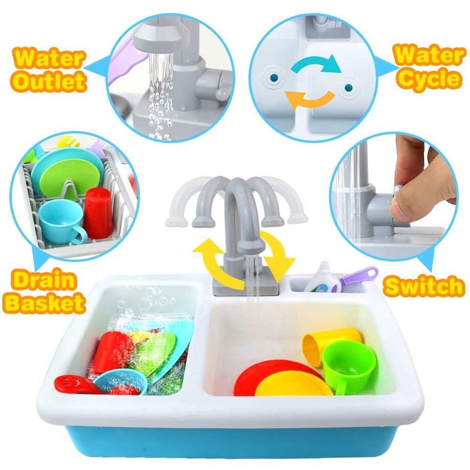 DWI Dowellin Pretend Play School Kitchen Sink Funny Washing Machine Toy With Running Water