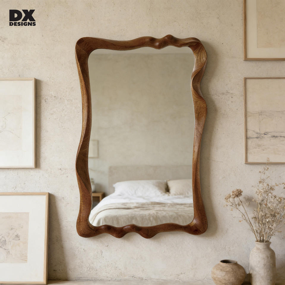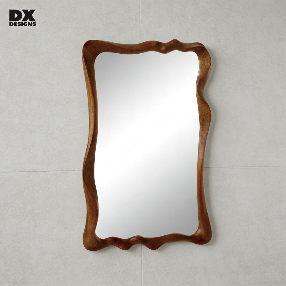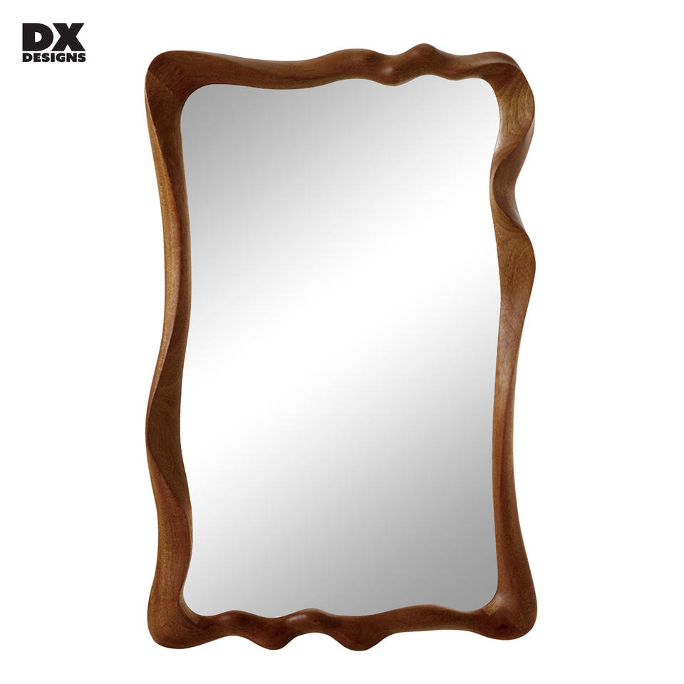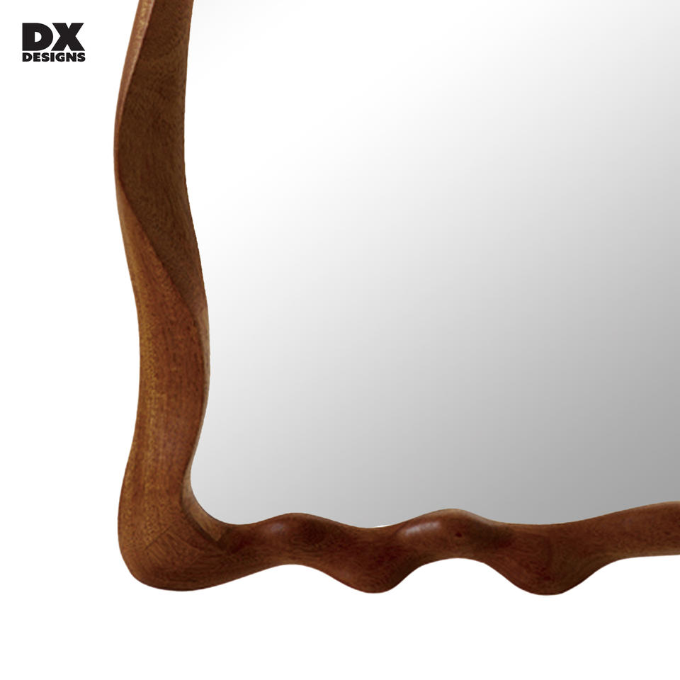 Specchio a figura intera in teak stile Mid-Century Modern DX Designs - Specchio da parete in legno con mensola portaoggetti per ingresso e camera da letto