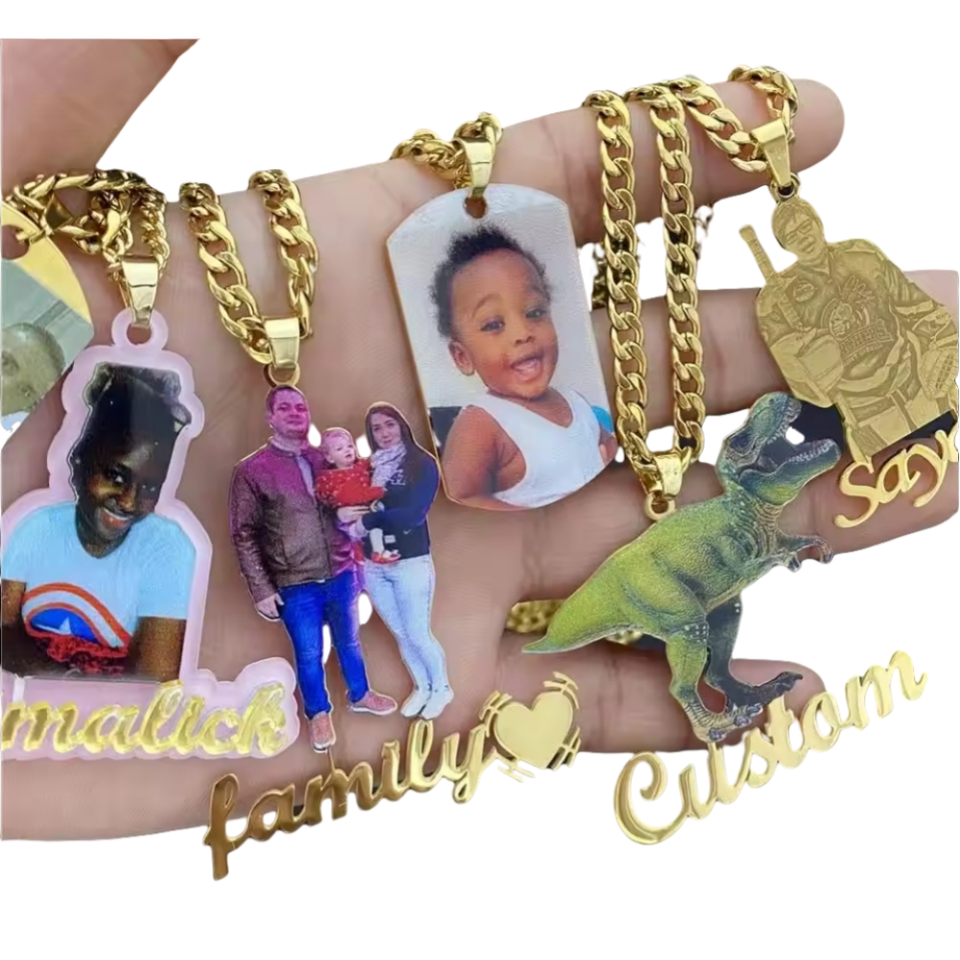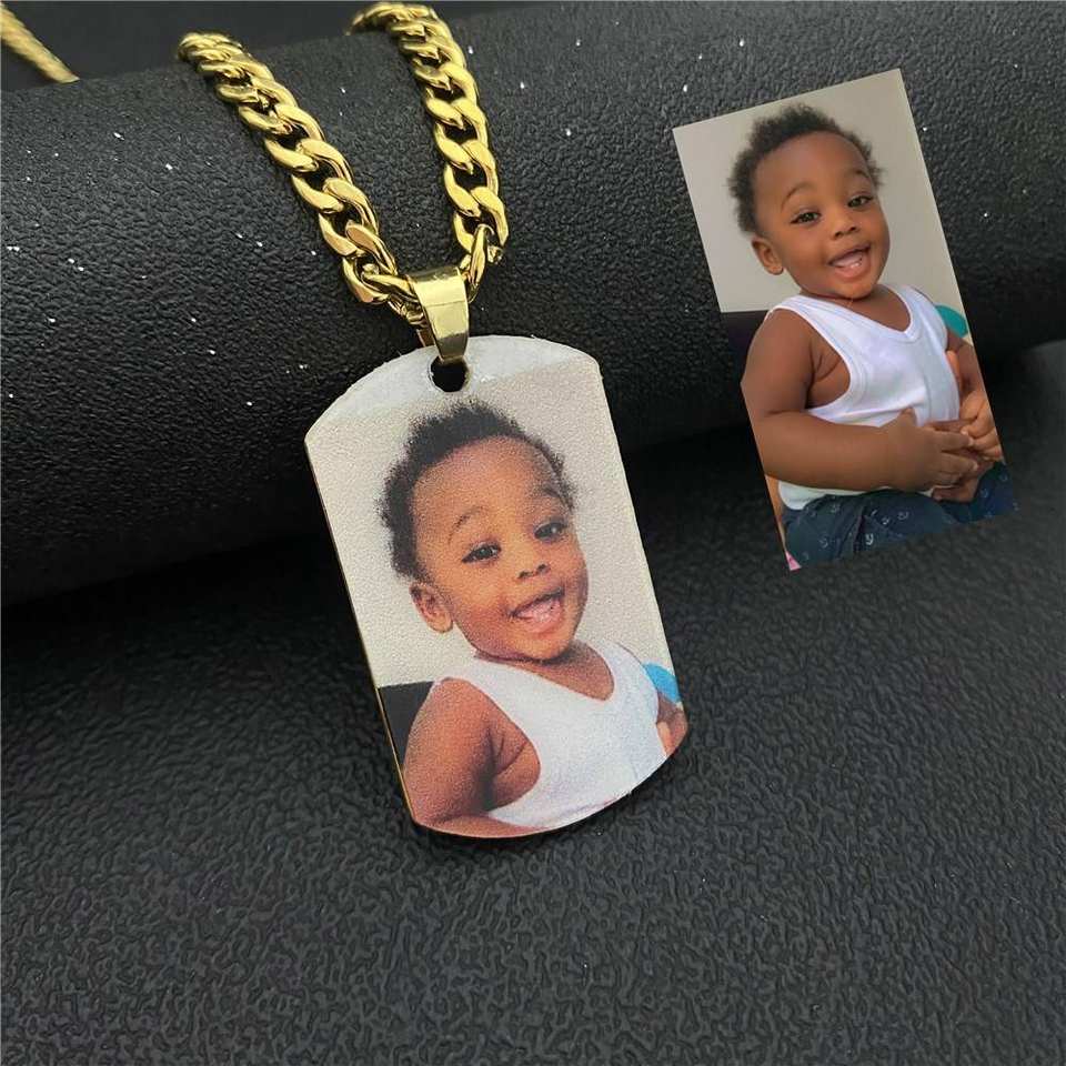 Collana fotografica personalizzata con catena in acciaio placcato personalizzata per bambini con ciondolo a goccia con targa d'oro con memoria in argento