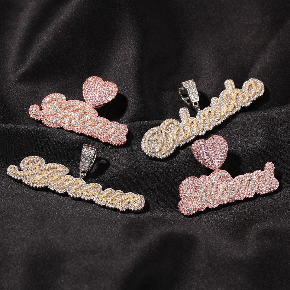DY Low Moq OEM Jewelry Iced Out Cuban Chain With Heart Custom Personalised Initials Name Necklace Women Gift