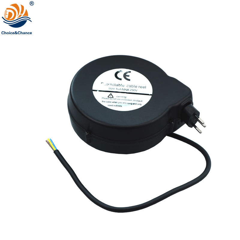 DYH 3C*1.5 3.0M AC Power Spring Loaded Retractable Cable Reel Extension Cord for Home Appliances 110-250V 8-16A Max 5m Black