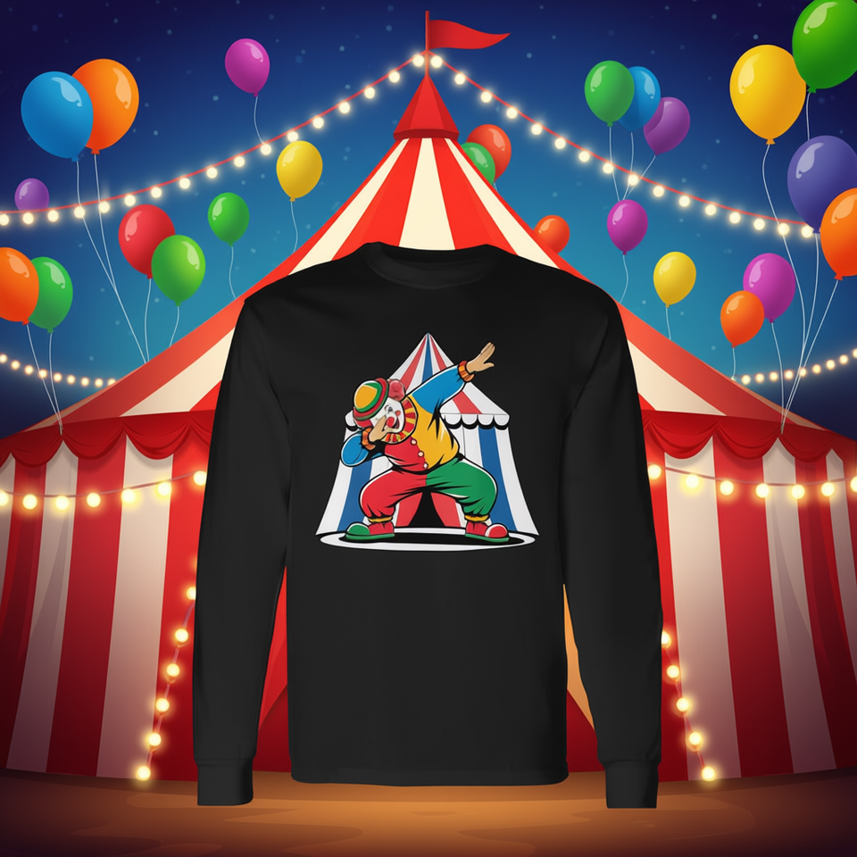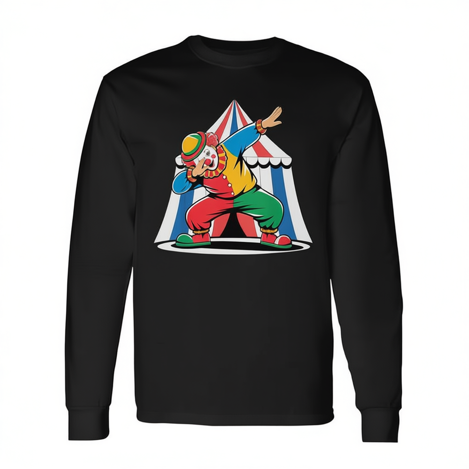 T-shirt a maniche lunghe con scollo rotondo, design divertente a tema clown da circo
