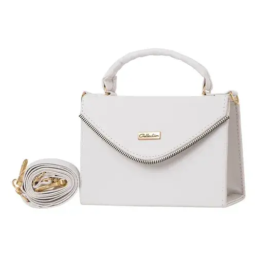 Dacia White Women's Fana Leather Messenger Bag Single Handle Zipper Fashion Geometric Waterproof Polyester Lady for Summer