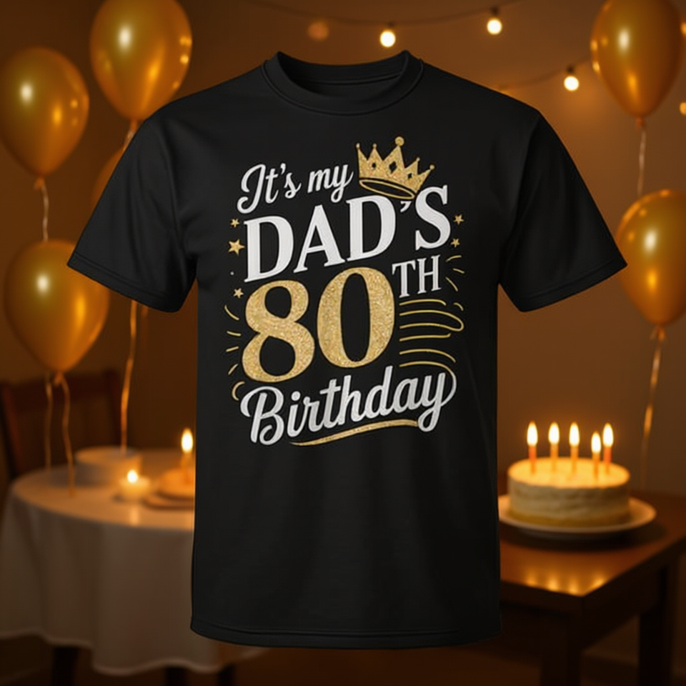 T-shirt per il 80° compleanno di papà, per adulti, maschile, a maniche corte, girocollo, con stampa digitale, regalo per la festa di compleanno