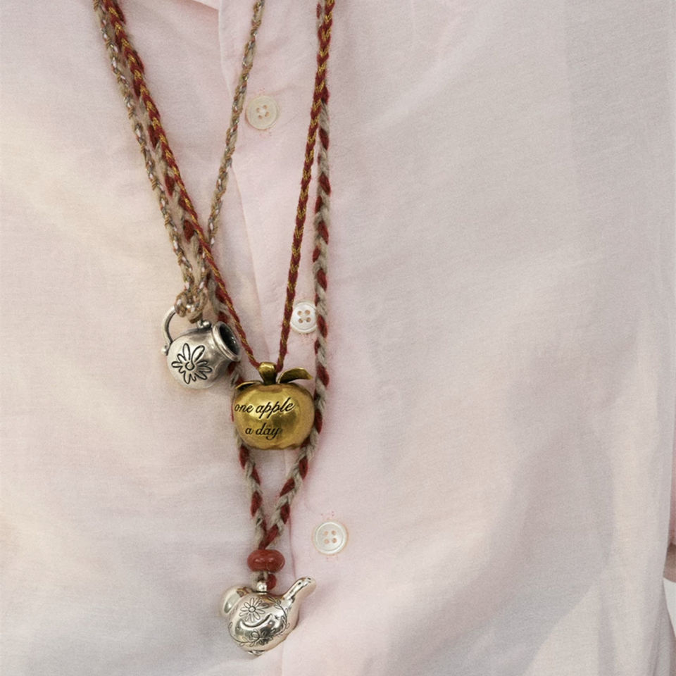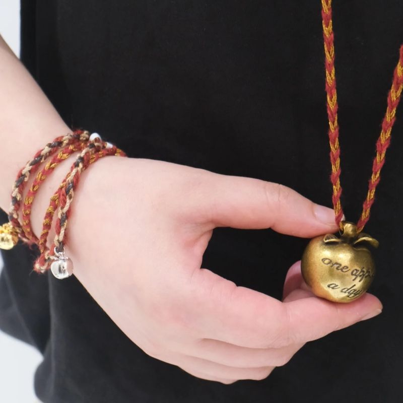 Daidan Environmental Brass Ladies Fashion Long Adjustable Wool Rope Letter One Apple a Day Big Apple Christmas Necklace