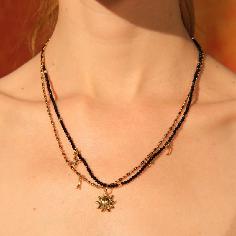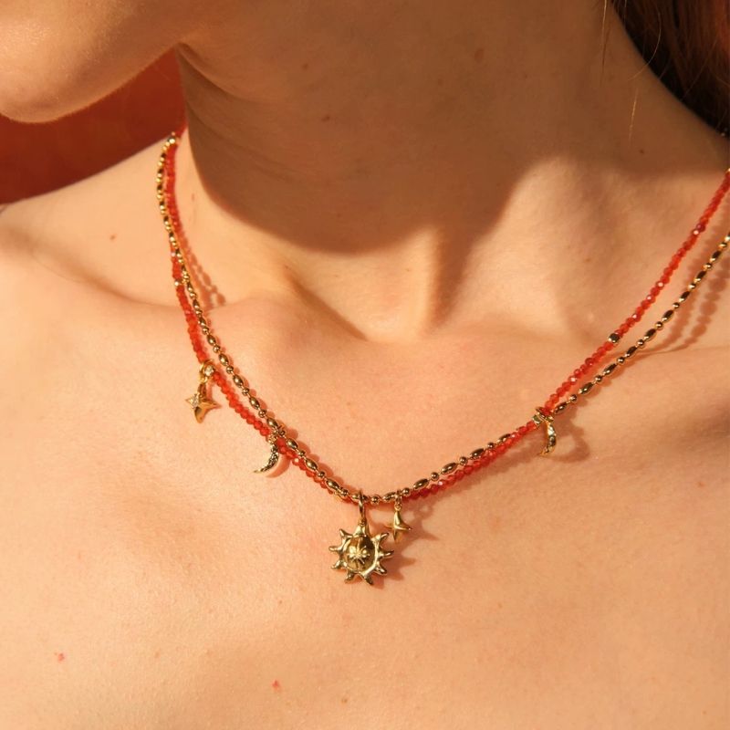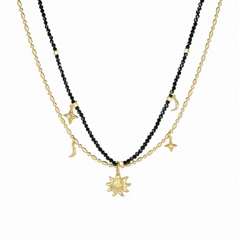 Daidan Moon Star Sun and Moon Environmental Brass Red Agate Black Tourmaline Fashion Beaded Necklaces