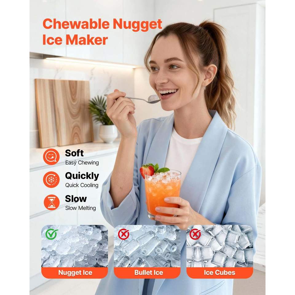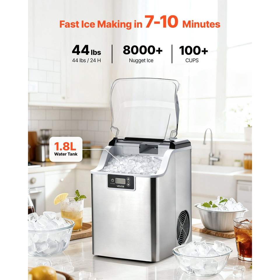 Macchina per il ghiaccio portatile da banco Daily 44 Lbs con funzione autopulente da 4 Lbs, paletta e cestello per la conservazione del ghiaccio