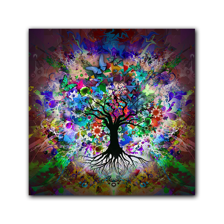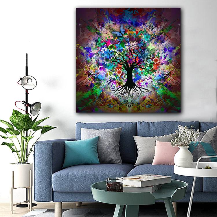 Daily Sales Colorful Tree of Life Wall Abstract Art Landscape Butterfly Printed Canvas Painting for Home Decoration