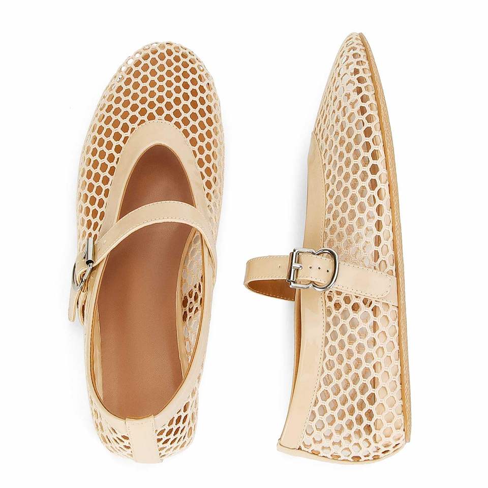 Daily Women's Black Ballet Flats Slip-On Fishnet Mesh Insole Pointed Toe Mary Jane Ballerinas Spring Dress Shoes Buckle Strap