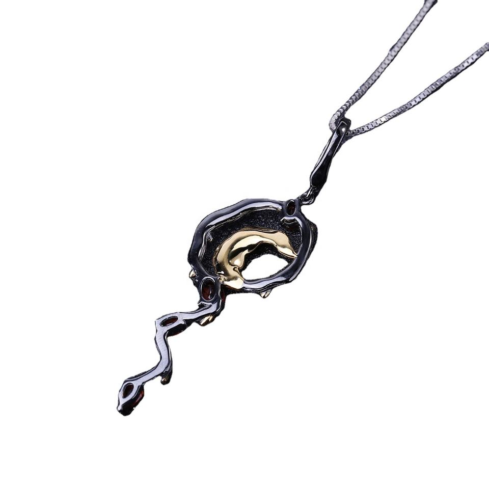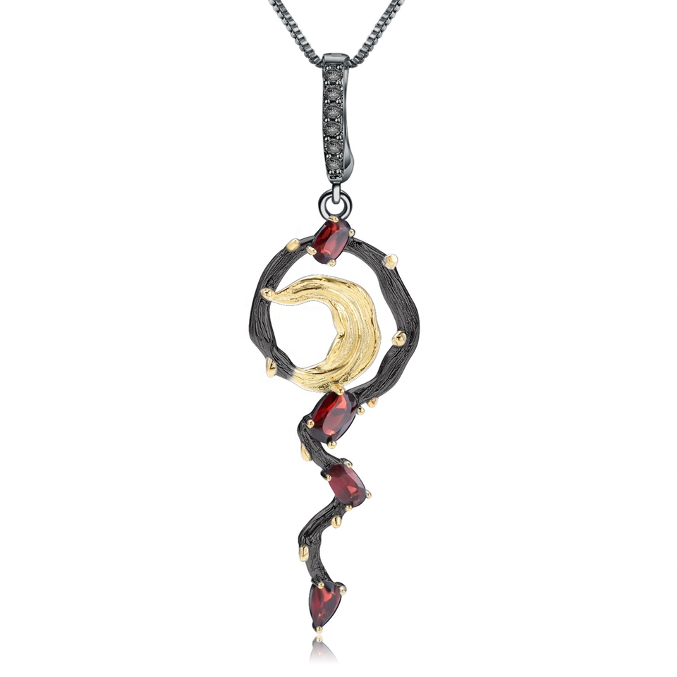 Usura quotidiana Personalizzato Belle delle Donne di figura della Luna di trasporto nero rutilate quarzo e rubino 925 argento placcato oro del pendente della collana