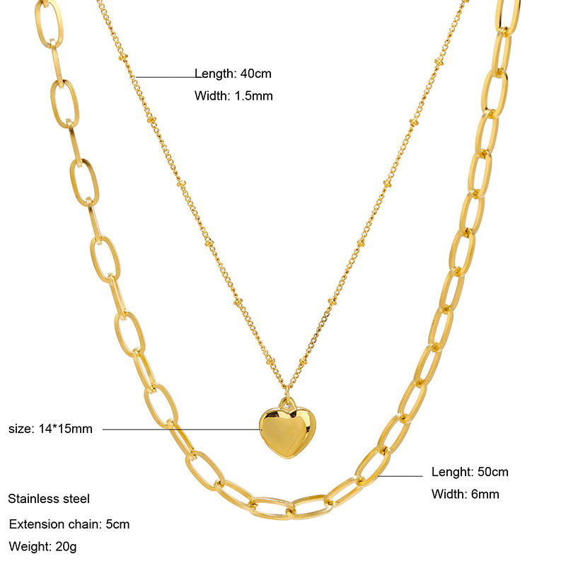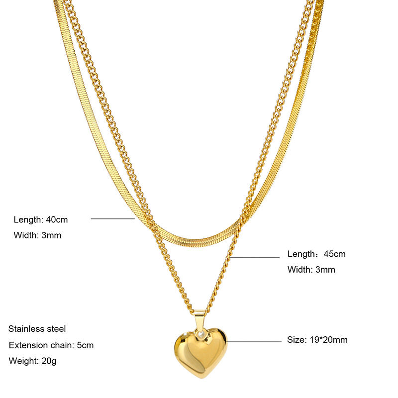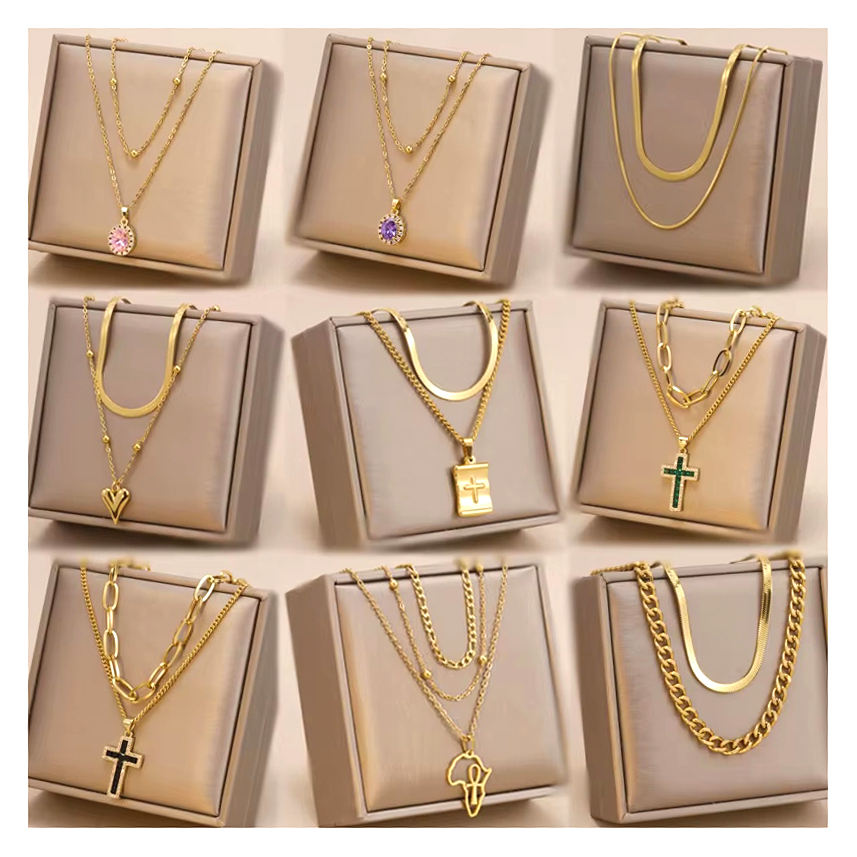 Dainty Fashion Stainless Steel Double Layer Snake Bone Chain 18k Heart Eyes Cross Pendant Necklace for Women