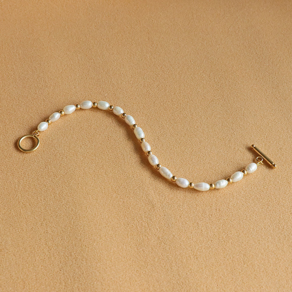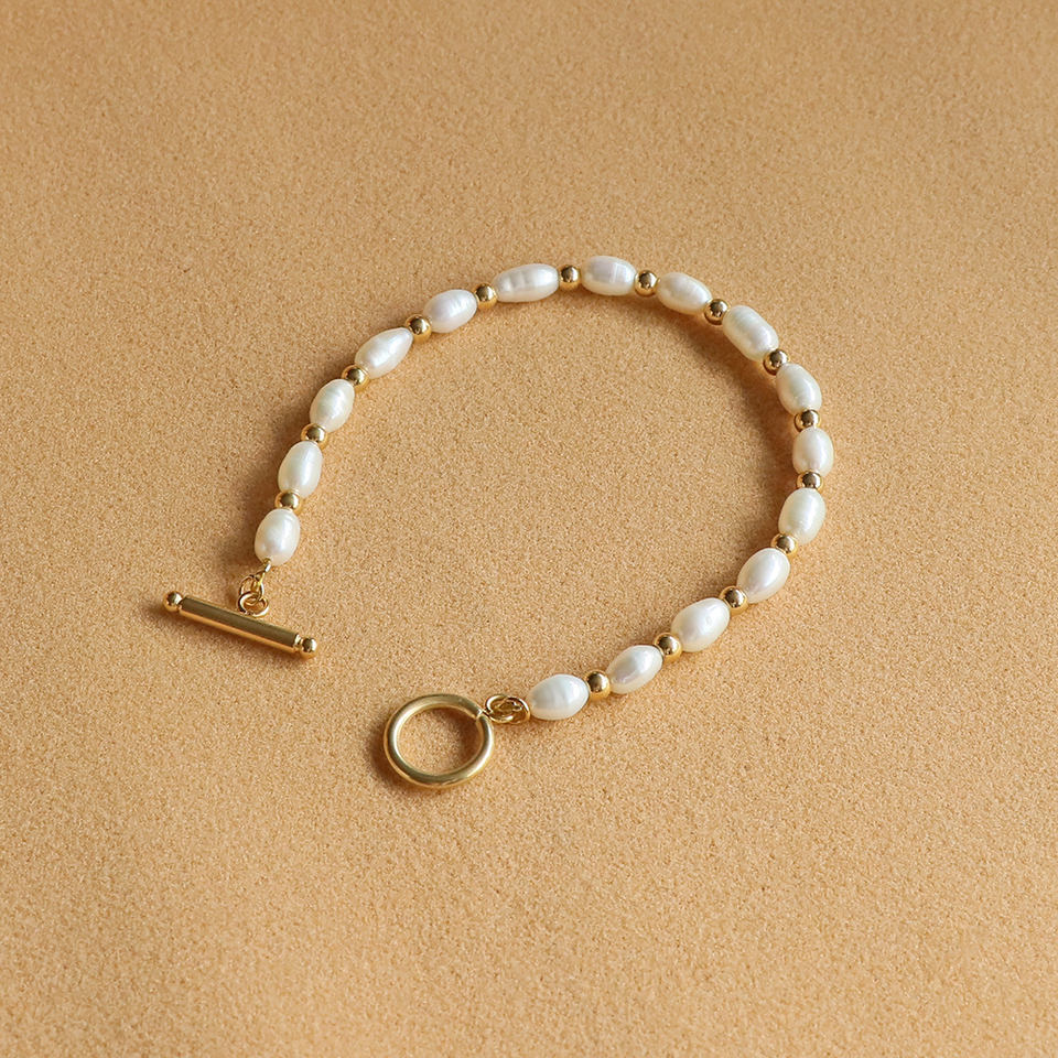 Dainty Jewelry Minimalist OT Bar Stainless Steel Beads Bracelet 5mm Real Freshwater Pearl Bracelet for Women
