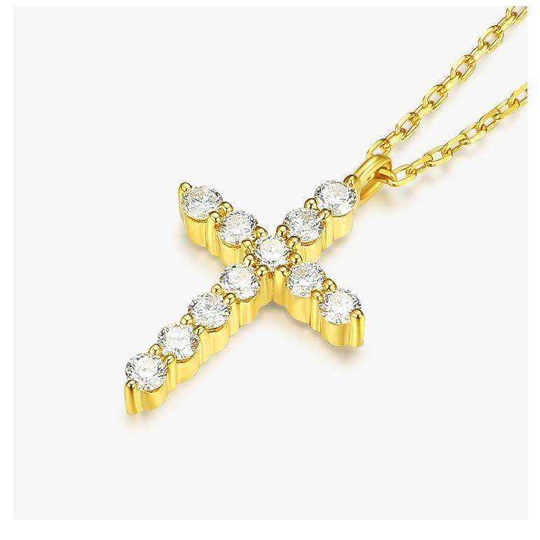 Delicata Collana con Croce in Acciaio Inossidabile Placcato Oro 18K con Micro-Incastonatura di Zirconi, Ipoallergenica per Donne