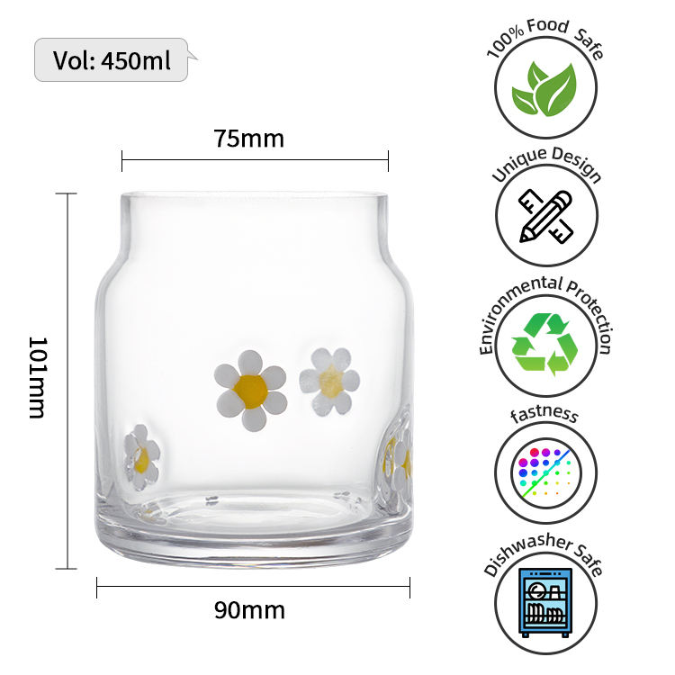 Nome del prodotto:Tazza in Vetro con Stampa di Margherite