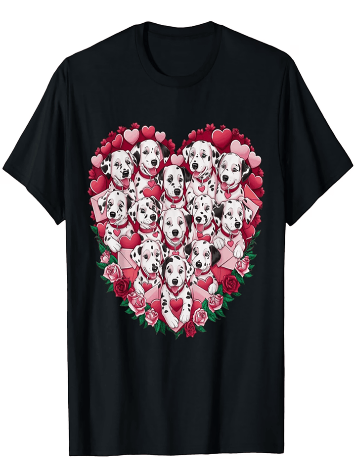 Dalmatian Dog Lover Valentine's Day T-Shirt 100% Cotton Round Neck Casual Tee Heart Print Gift For Men