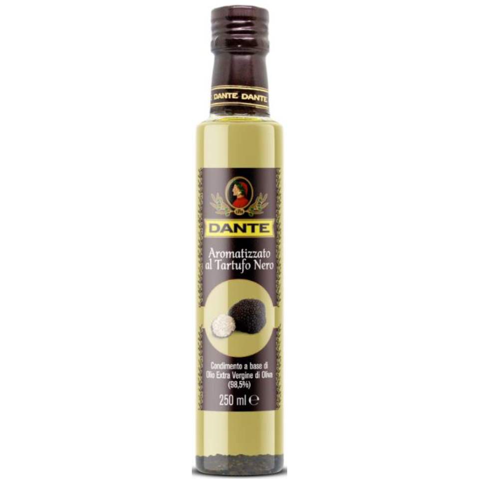 Olio d'Oliva Aromatizzato al Tartufo Nero Dante 250ml X 6 Pezzi, 98,5% Puro in Bottiglia di Vetro per Cucina Stagionale e Gourmet