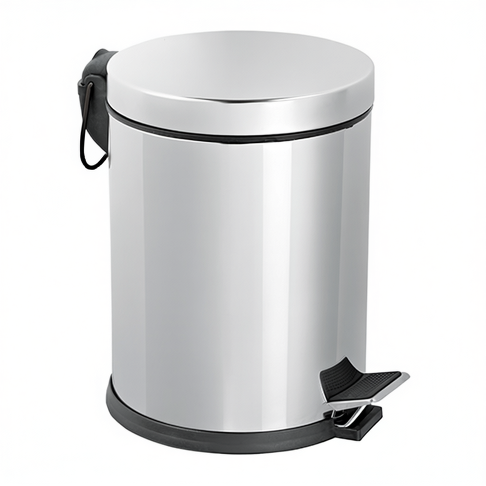 Cestino per Rifiuti Daphne Cromato 16 L, Diametro 24,5 Cm, Altezza 44,4 Cm, con Apertura a Pedale per Cucina e Bagno